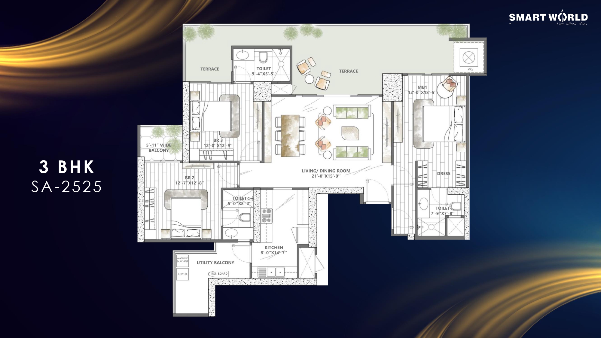 Smartworld Sky Arc is located in Sector 69, Golf Course Extension Road. The project features a variety of floor plan configurations designed for modern living.